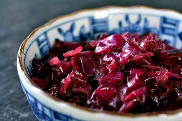 Rendelenen kırmızı lahana, çok az tuz ilavesi ile ve ovuşturularak diriliği giderilir. İki yemek kaşığı zeytinyağı ilave edilir. Diğer tarafta süzme yoğurt (Sütaş süzme yoğurttan vazgeçemiyorum), iki diş sarımsak, iki kaşık mayonez karıştırılır ve lahanaya eklenerek karıştırılır. Dekoratif bir süsleme ile servis tabağına alınır.